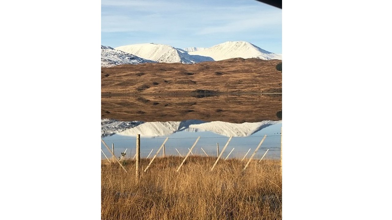 The near perfect reflection of Glen Co over the river on your way to Fort William, Scotland